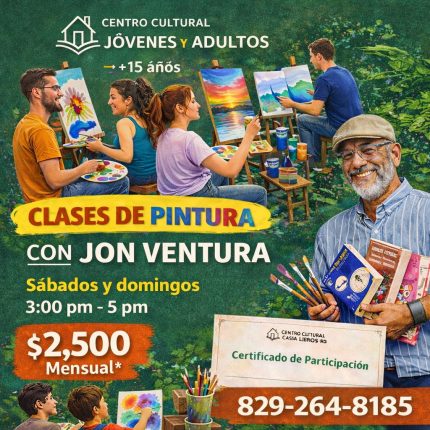 🖌️ Cuando pintar deja de ser un hobby… y se convierte en refugio El estrés, la rutina, la presión diaria… A veces el alma solo necesita un pincel y silencio. Este espacio es para quienes sienten que algo creativo quiere salir, pero no saben por dónde empezar. Las clases de pintura con Jon Ventura no son solo técnicas: son una experiencia para desconectar, crear y reencontrarte contigo. Durante 7 semanas, aprenderás fundamentos de pintura, composición y color, sin importar tu nivel. Aquí no vienes a competir: vienes a expresarte. ✨ Incluye: ✔️ Ciclo completo de 7 semanas ✔️ Materiales básicos incluidos ✔️ Acompañamiento profesional ✔️ Certificado de participación ✔️ Exhibición final abierta al público en Casa Libros RD 🕒 Horarios: • Sábados: 3:00 pm – 5:00 pm 💰 Inversión: Precio lanzamiento: RD$4,000 por ciclo Precio mensual RD$2,500 🎨 No sigas postergando eso que te hace bien. 📲 Escríbenos ahora al 829-264-8185 Cupos limitados · ⸻