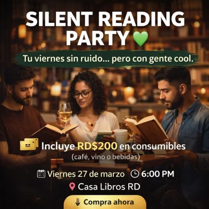 Si los planes con ruido ya no te emocionan… este viernes tenemos algo diferente. Una hora para desconectar del mundo pero rodeado de gente interesante. 📚 Silent Reading Party 💳 Incluye RD$200 consumibles 🎟 Entrada RD$300 📅 Viernes 27 de marzo 🕕 6:00 PM 📍 Casa Libros RD ⚠️ Cupos limitados Reserva tu espacio.